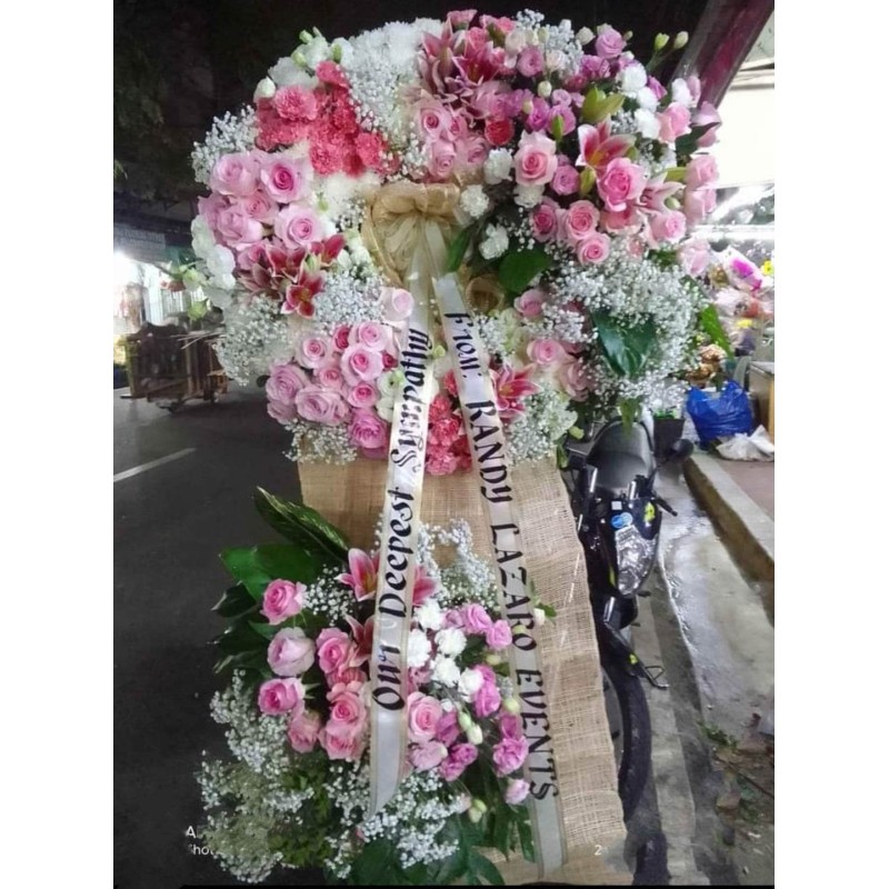 All fresh imported flowers wreath flowers arrangement. 7-8ft tall.