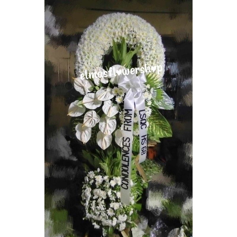 Fresh white radus and anthuriums wreath funeral flowers arrangement. viber/whatsapp: 09483937585