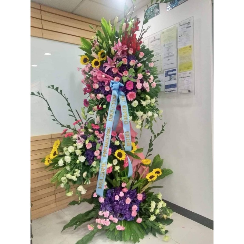 Assorted fresh flowers inaugural, opening, blessing flowers stand arrangement.