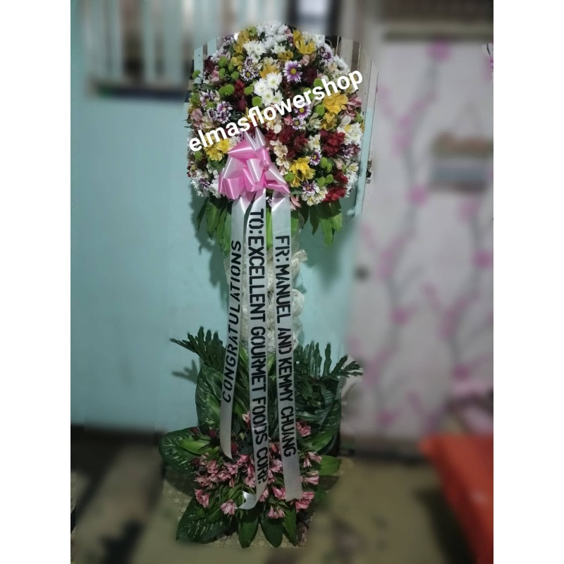 Assorted fresh flowers inaugural, opening, blessing flowers stand arrangement.