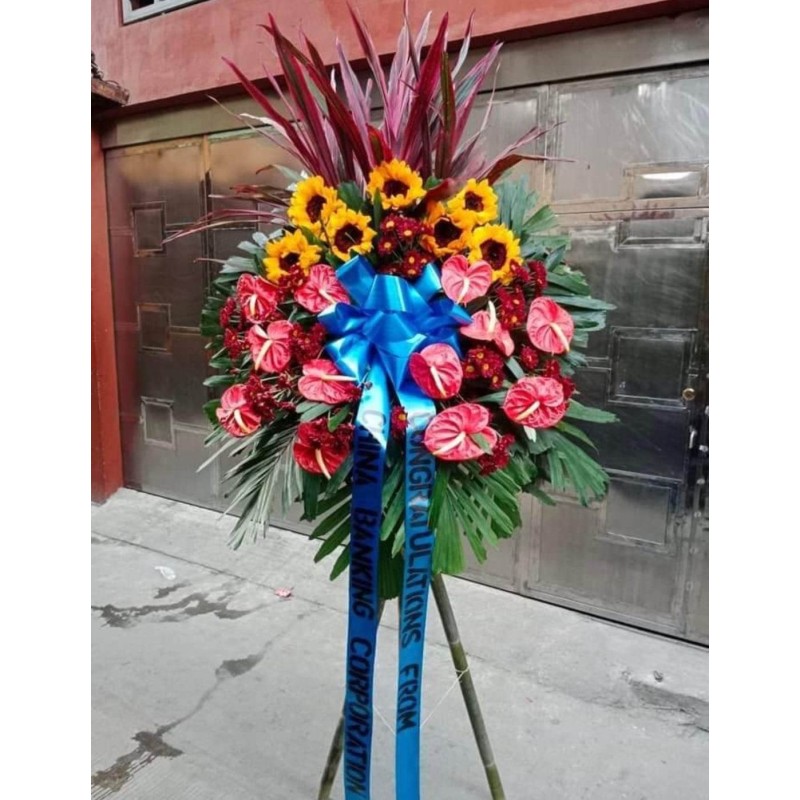 Fresh sunflowers, mums and anthuriums inaugural, opening flowers arrangement.