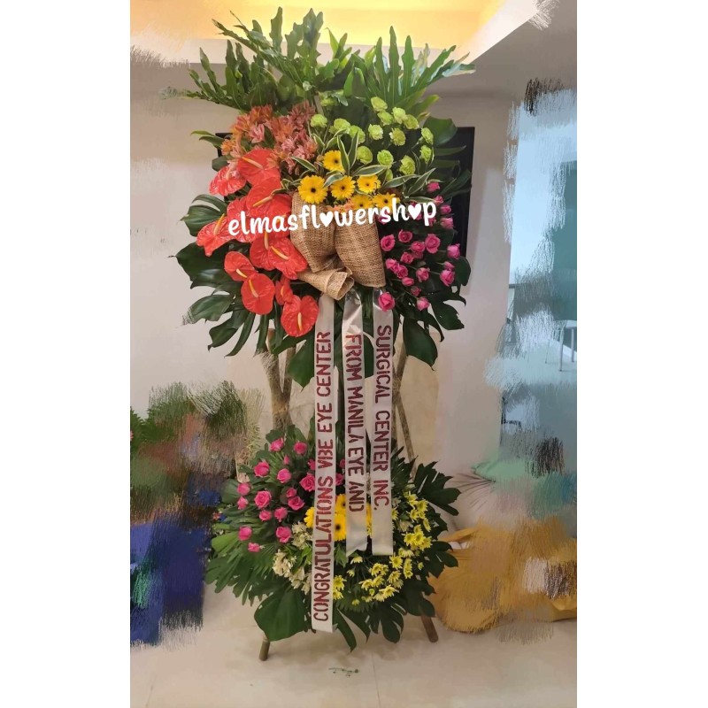 Fresh anthuriums, pink roses, astromeria, mums, carnations and gervera inaugural flowers arrangement. viber/whatsapp: 09483937585