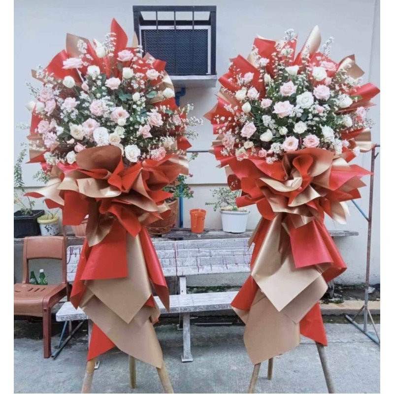 Fresh roses and asters 2pc blessing stand flowers arangements with free ribbon cutting. viber/whatsapp: 09483937585