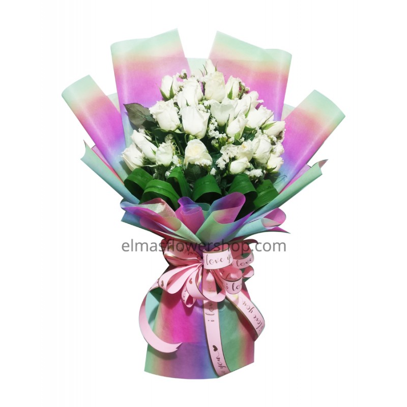 24pcs fresh white roses and fresh fillers bouquet